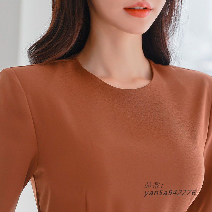ハイウエストベルト フカスリットロングスカート 長袖ワンピース 茶 おしゃれ きれいめ 韓国 服 エレセクシー yan5a942276 WWW_NICORILABO_COM