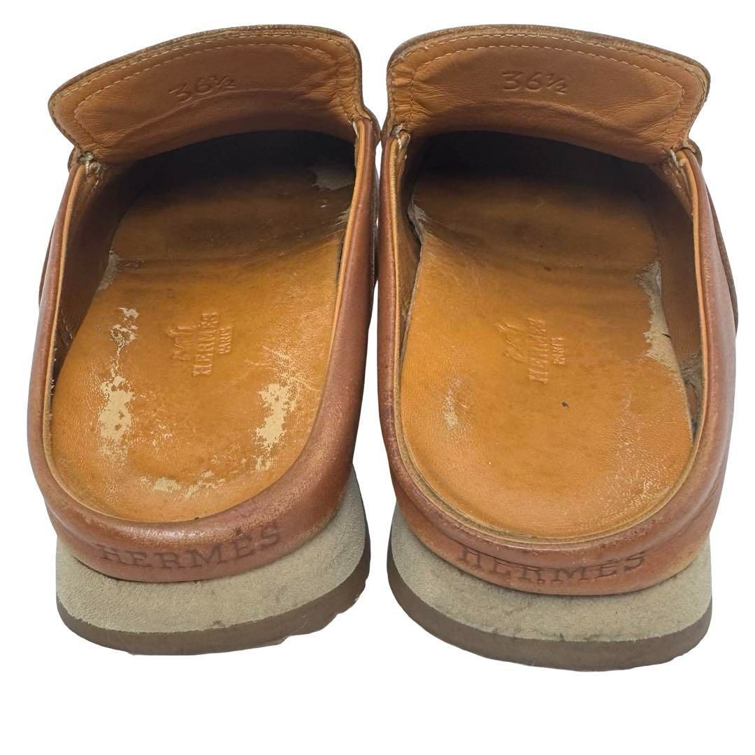 HERMES エルメス レザー スリッポン ブラウン系 モカシン風 フラットシューズ MADE IN ITALY 表記36.5 約23.5cmレディース メンズ WWW_NICORILABO_COM
