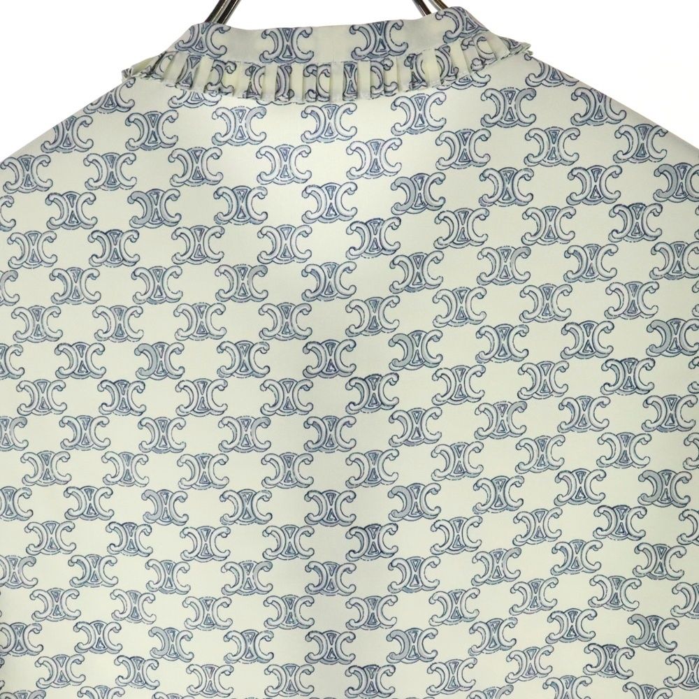 CELINE セリーヌ 22SS トリオンフ 総柄 シルク クレープデシン リボン 半袖シャツ ブラウス ホワイト レディース 2B553632P WWW_NICORILABO_COM