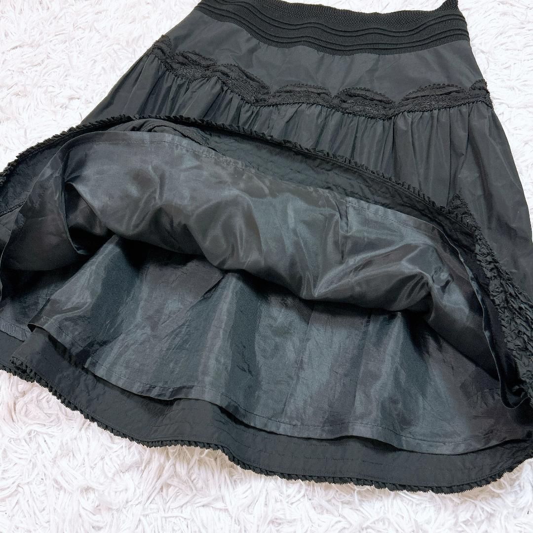 定価7.8万 Rossa ベロアフリルティアードスカート 46 ブラック