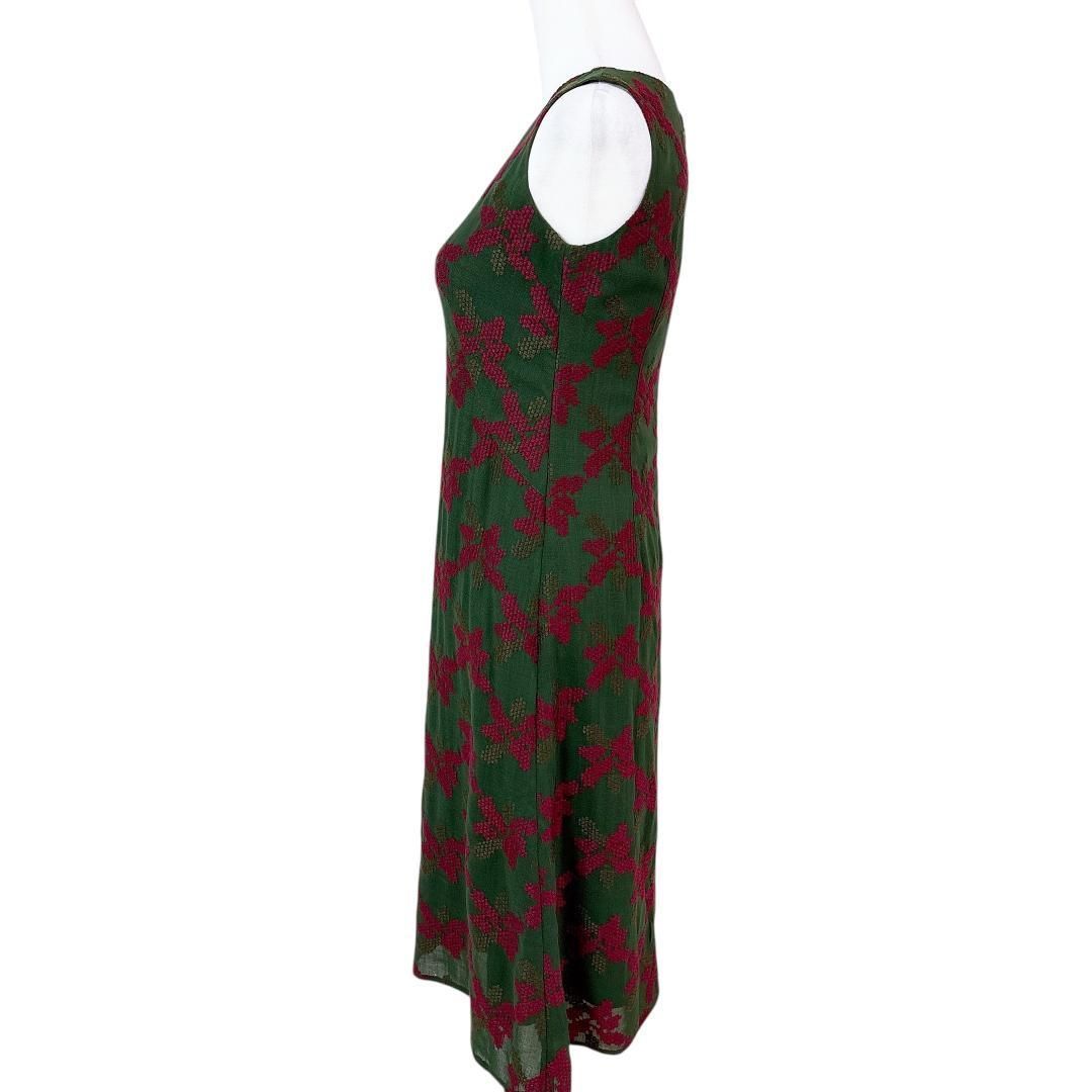 シビラ ノースリーブワンピース M 刺繍花柄チェック 緑×赤の検索結果