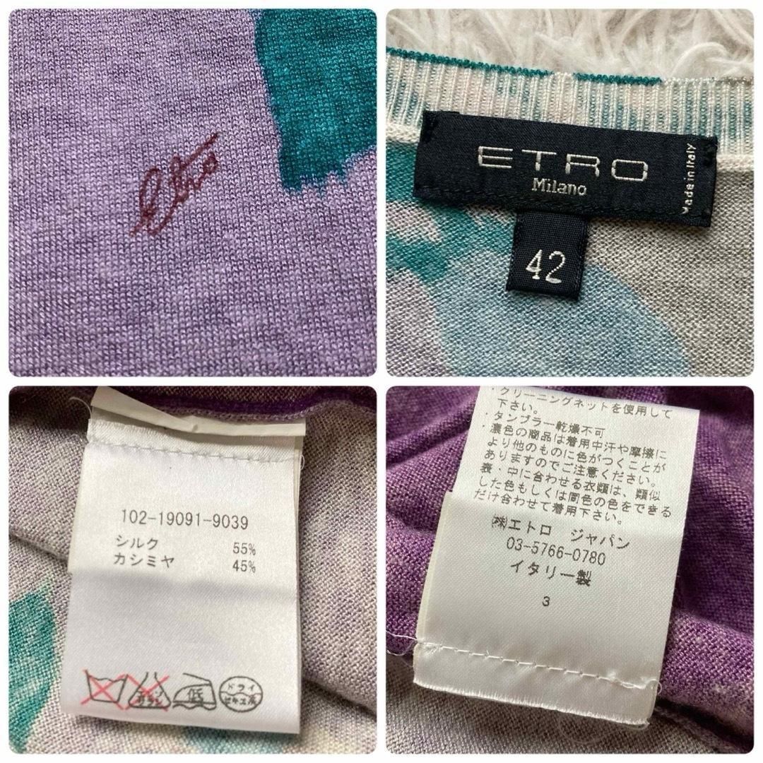 ETRO エトロ イタリア製 シルクカシミヤ ニットワンピース ロングワンピース 花柄 ペイズリー プルオーバー 長袖 ロングスリーブ 42サイズ パープル グリーン ピンク WWW_NICORILABO_COM