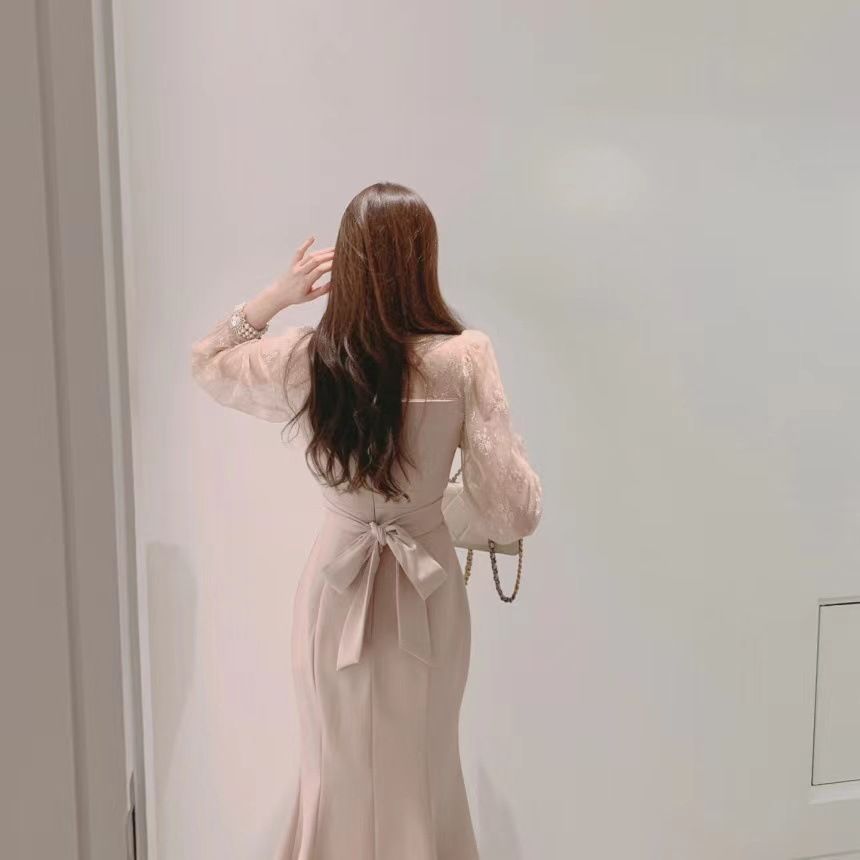 シースルー長袖 胸元リボンタイ 膝丈タイトワンピース ピンク 発表会 かわいい レディース 服 xzdssxjの検索結果