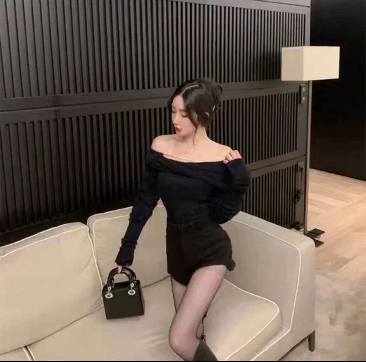 modimood スクエアネック LINE ツイード コート ジャケット アイボリー 1サイズ Glamlee スカート