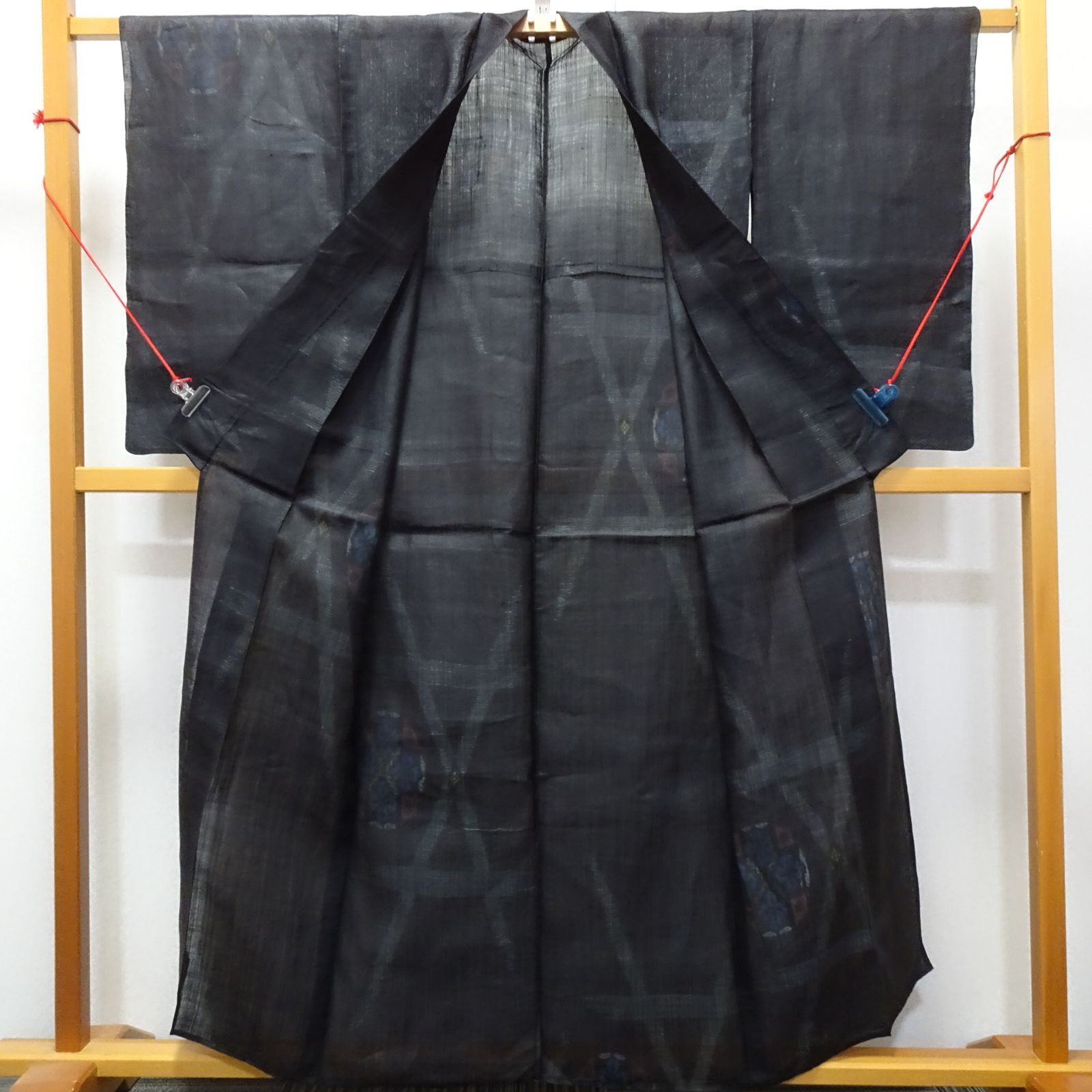 アンティーク 宮古上布 着物 横絣 赤 青 黄入り 232186の検索結果