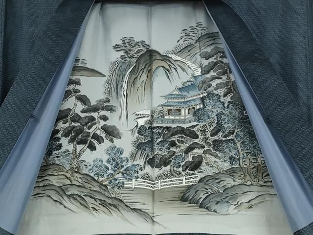 平和屋着物 上 男性 紬 アンサンブル 長羽織 羽裏 虎 龍 色無地 紺青色 ♥ DZAA9880kh5
