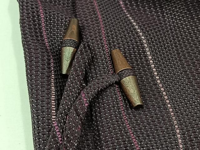 道中着 身丈97cm 裄丈66cm M 和装コート 段縞 茶色 正絹 秀品