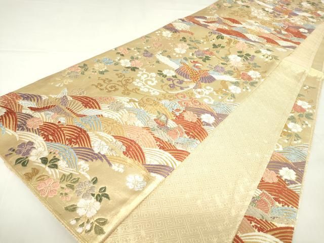平和屋着物●佐賀錦 六通柄袋帯 唐織 瑞鳥桜花流波文 金糸 正絹 DAAX3719az WWW_NICORILABO_COM