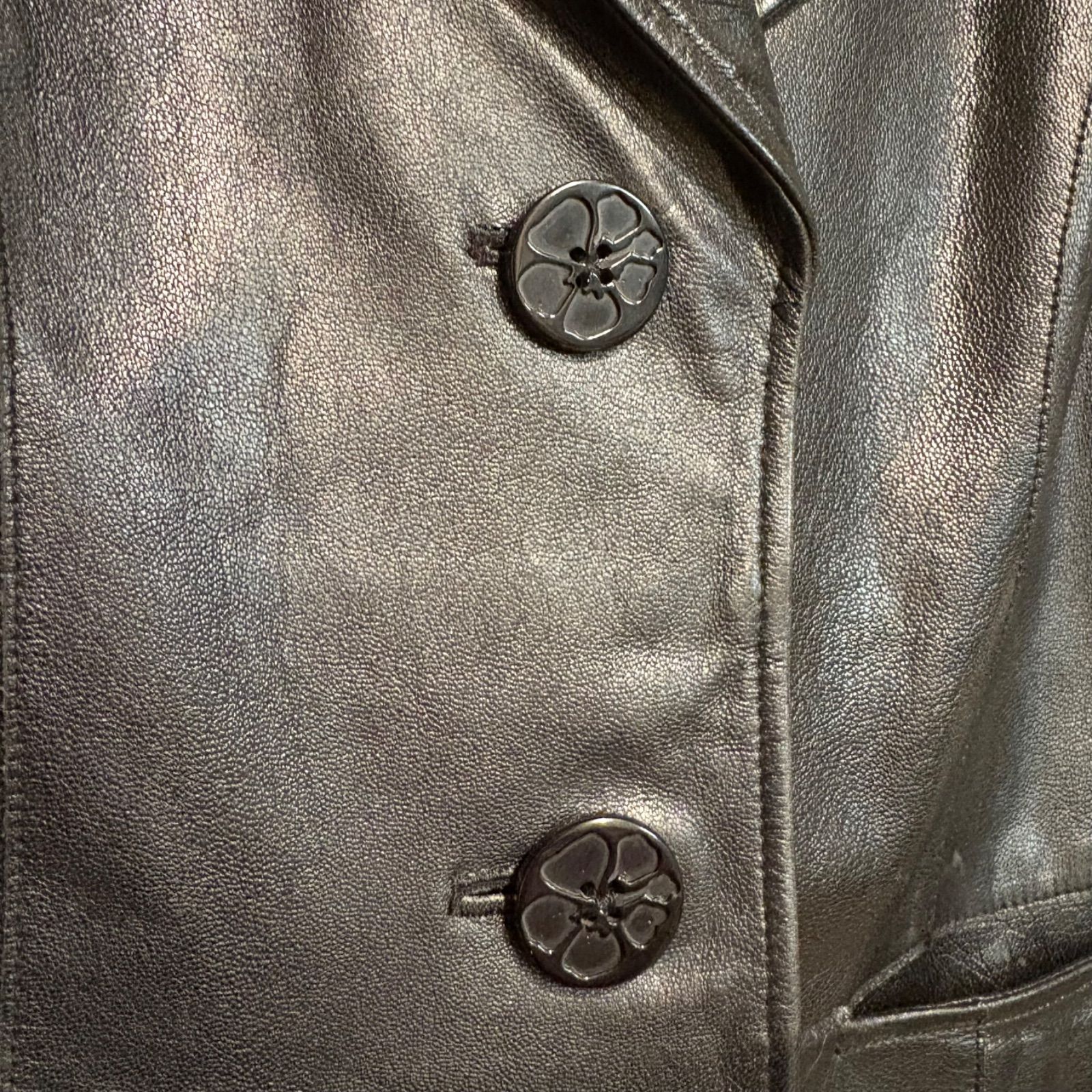 90s ヴィンテージ ENGLAND LAMB ステンカラー ラムレザーコート 羊革 レディース サイズ9 ブラック系