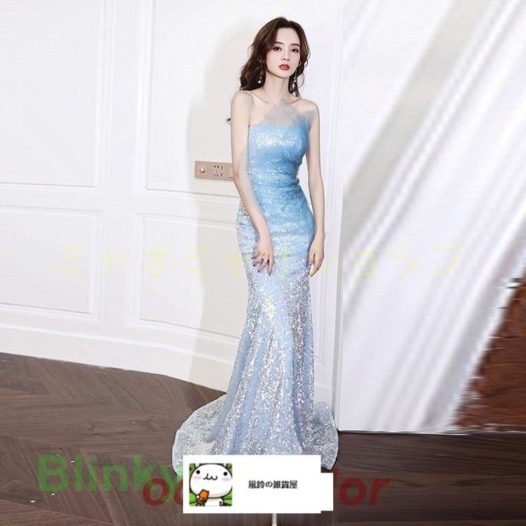イブニングドレス マーメイドドレス キラキラドレス キレイめ 発表会 ブルー ビスチェドレス ロングドレス ノースリーブ 水色 グラデーション スパンコール WWW_NICORILABO_COM