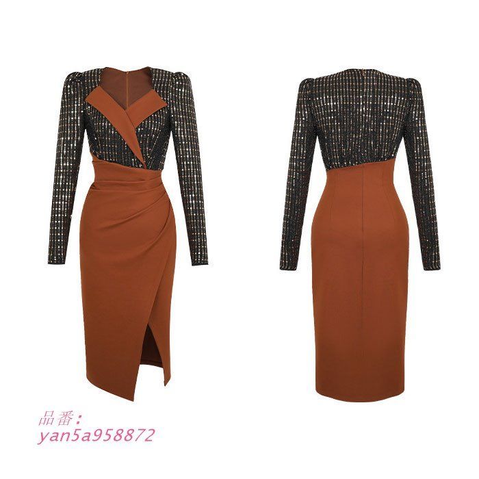 襟付き胸元開き ハイウエスト深スリット 膝丈長袖ワンピース 茶 キャバ スナック ラウンジ ドレス レディース 韓国 yan5a958872の検索結果