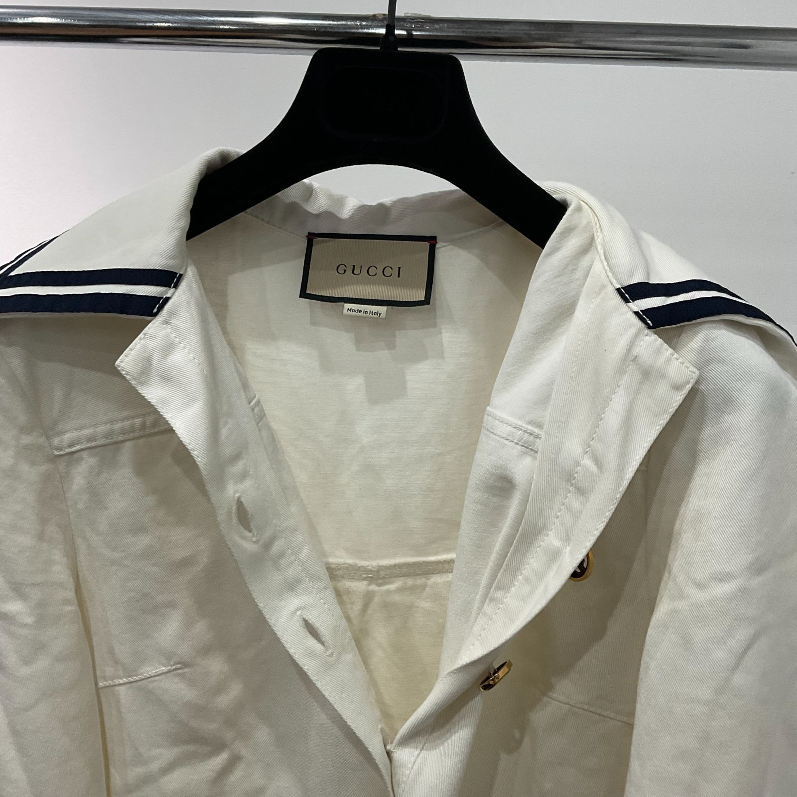 GUCCI グッチ 691890 ワンピース ストライプトリム マリンテイスト GGボタン 白×ネイビー 38 ワンピース D25082161の検索結果