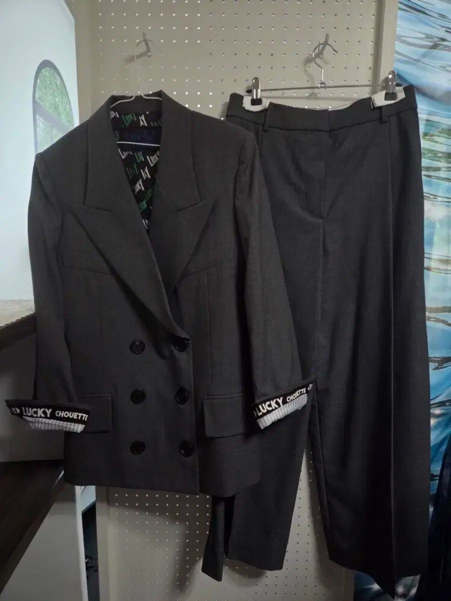 LUCKY CHOUETTE ラッキーシュエトゥ カラ ダブル ジャケット パンツ セットアップ 2ピース 36 ダークブラウン グレー WWW_NICORILABO_COM