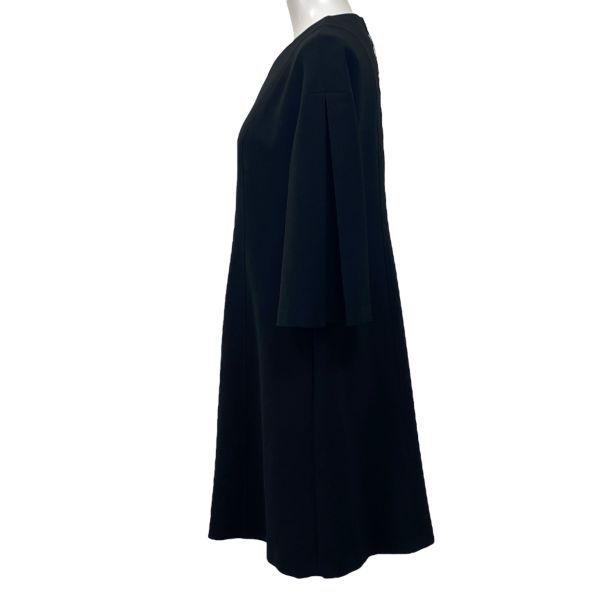 ◆ フォクシーニューヨーク FOXEY NEW YORK ノーカラーワンピース 膝丈 七分袖 フ Aライン 黒 38 M 9号 レディース S5W210 WWW_NICORILABO_COM