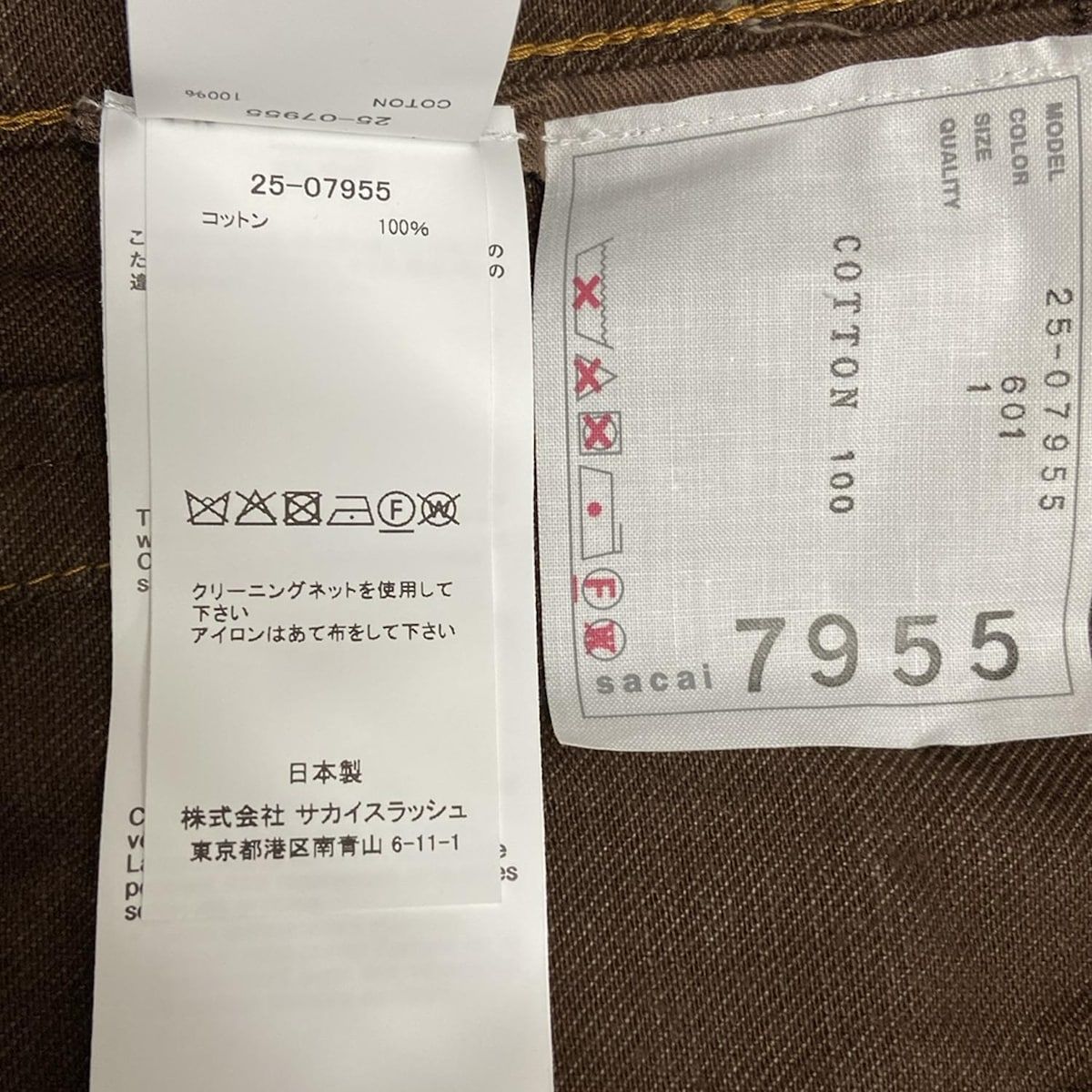Sacai サカイ Gジャン サイズ1 S レディース - 25-07955 ダークブラウン 長袖|春|秋 コットンの検索結果