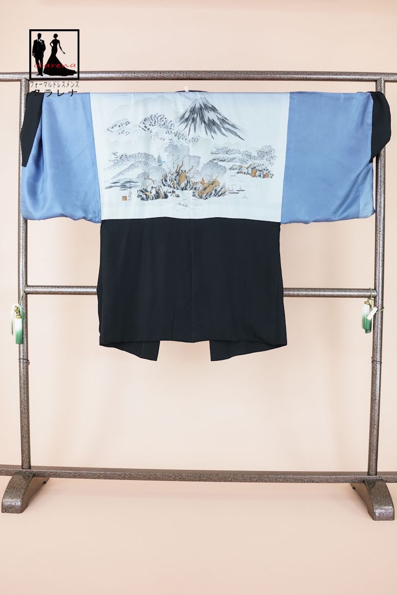 平和屋着物 上 男性 色無地 紋付き羽織セット 舞台衣装 花菱地紋 黒地 洗える着物 CYAA3465s5