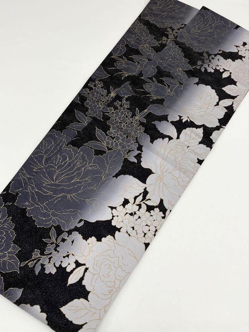 全通 袋帯 バラ モダン モノトーン 銀通し 金彩 正絹の検索結果