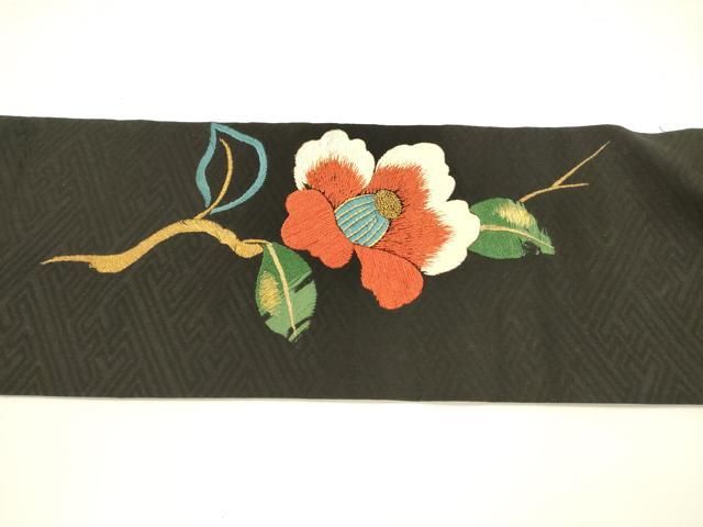平和屋着物●アンティーク 大正ロマン 九寸名古屋帯 総刺繍 枝花文 雪輪矢羽文 黒地 金銀糸 正絹 DAAY8230cmの検索結果