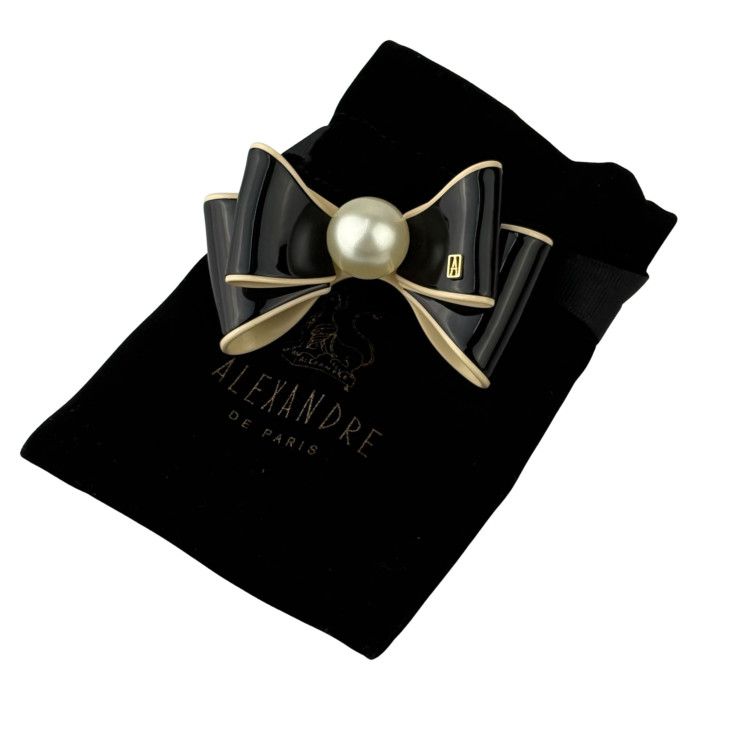 ALEXANDRE DE PARIS アレクサンドル ドゥ パリ バレッタ ヘアアクセサリー ブラック ベージュ プラスチック レディース リボン パール 超 WWW_NICORILABO_COM