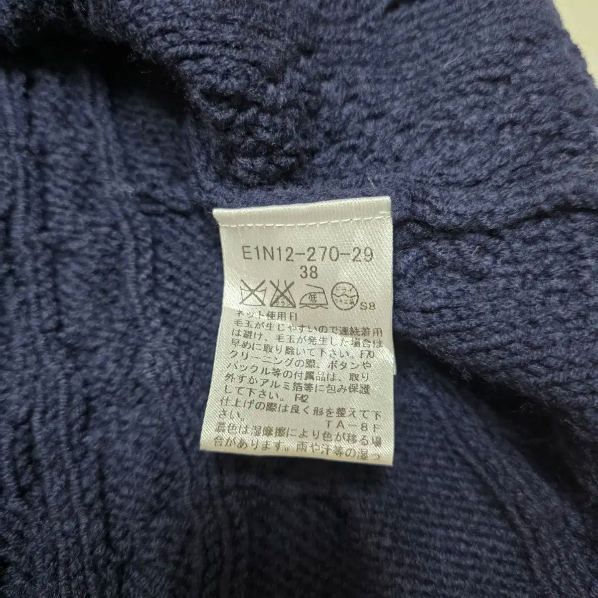 ネイビー色のケーブル編みパータン ニット素材で