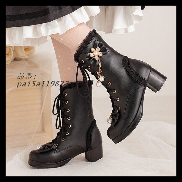 ブーツ 厚底 甘ロリ ロリィタブーツ ゴスロリ 低いヒール 編み上げ おでこ靴 女の子 可愛い メイド靴 ロリィタ靴 レディース pai5a119823 WWW_NICORILABO_COM