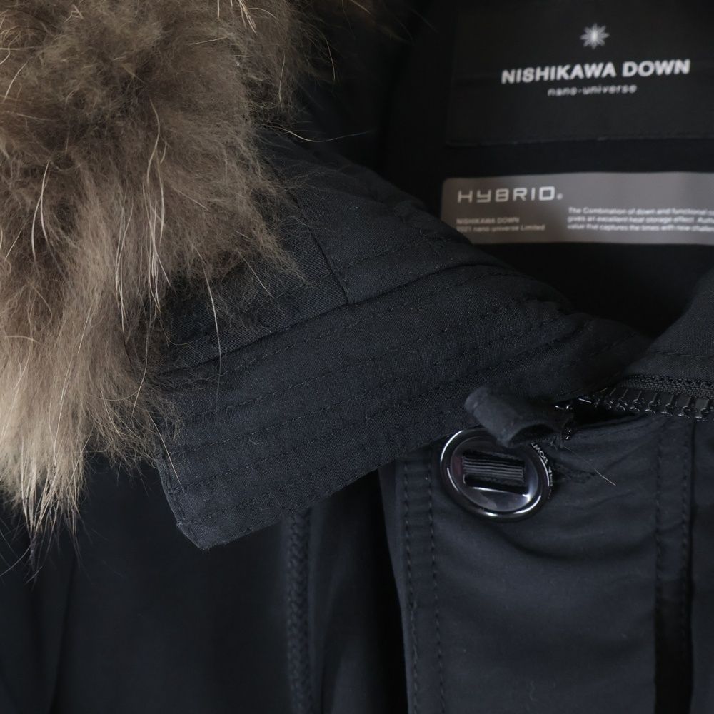Nishikawa Down ニシカワダウン ×NANO UNIVERSE ナノ ユニバース ジップアップフーデッドファーダウンジャケット ブラック WWW_NICORILABO_COM