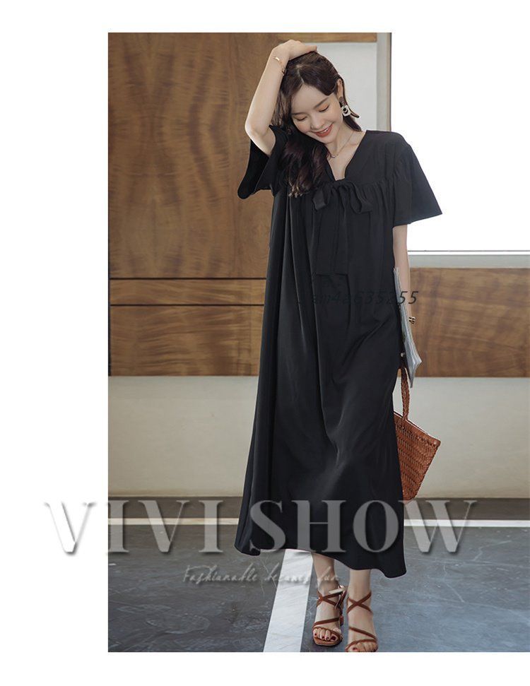 ワンピース レディース きれいめ ゆったり 半袖 リボン付き 着痩せ韓国風 マキシ ロングワンピース 体型カバー おしゃれ am4a635255 WWW_NICORILABO_COM