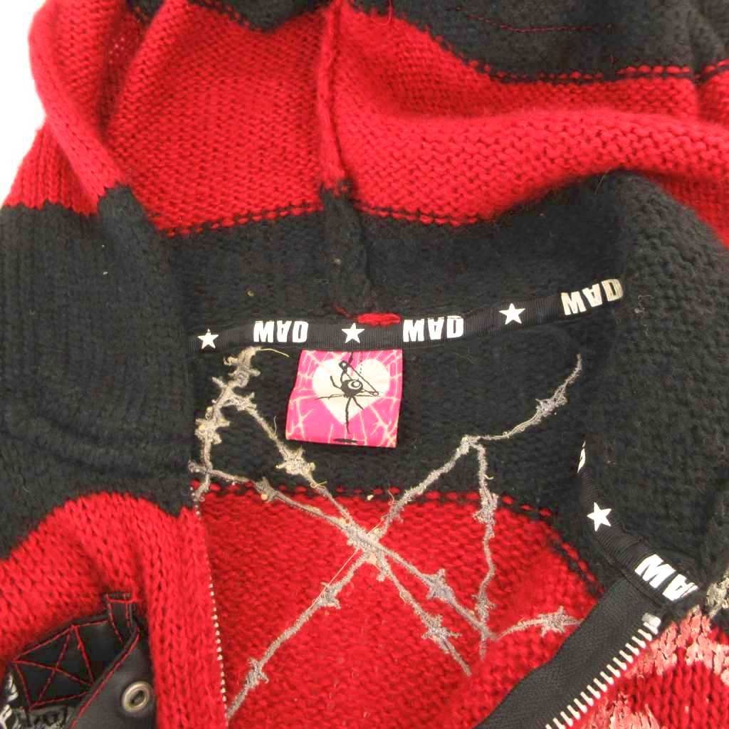 MAD GIRL ジップアップ ニット パーカー ボーダー ネコ耳フード パンク スカルプリント F レッド ブラック |UOの検索結果