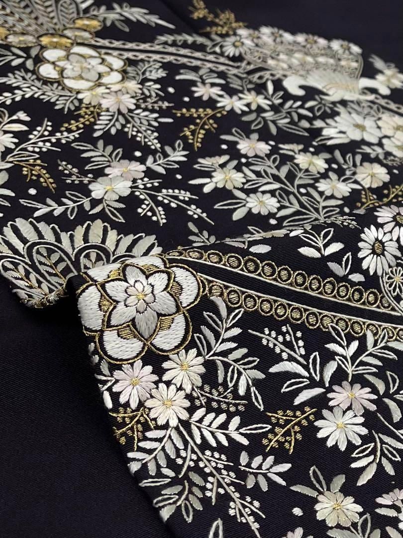 訪問着 身丈171cm 裄丈68cm L 袷 菊 梅 刺繍 金糸 黒 正絹
