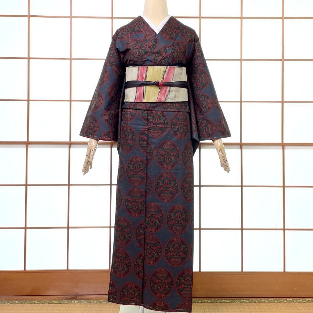 本場奄美大島紬 着物 泥大島 益村絹織物製 正絹 華丸紋 紺色 ビンテージ着物 リユース品 オゾン消臭サービス A-1809の検索結果