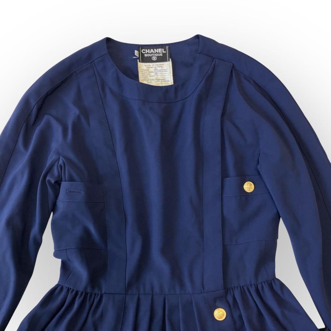 CHANEL 麻 絹 金ボタン ワンピース 仏製 96C レディース M〜Lの検索結果