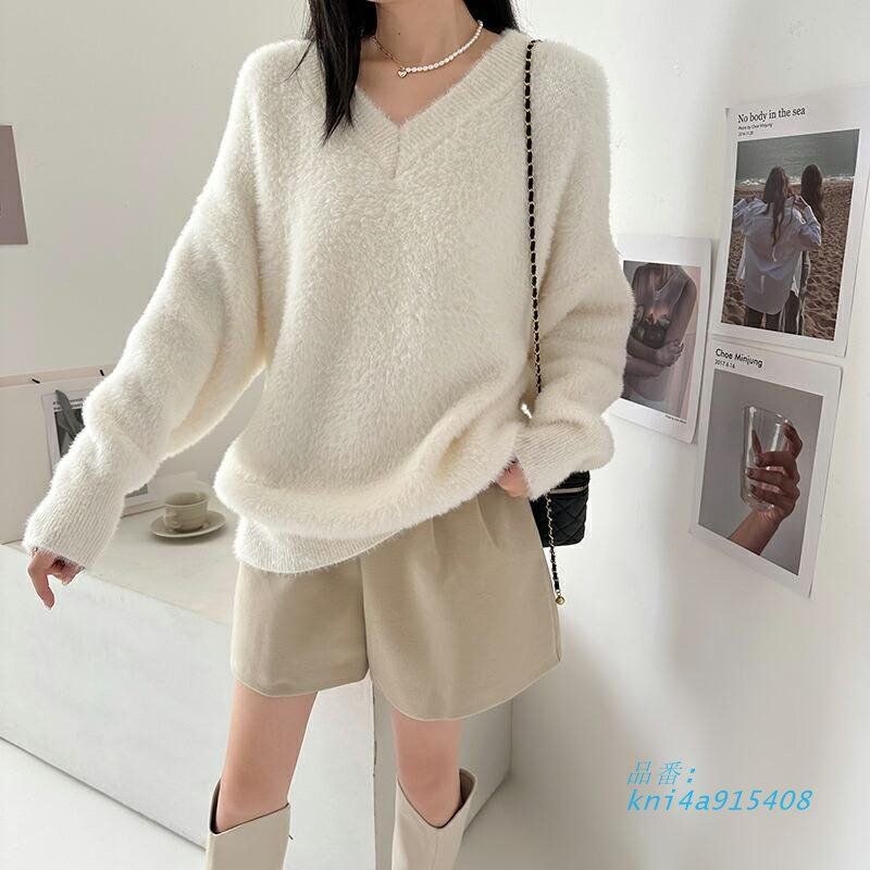 セーター Vネック ニット トップス レディース モヘア風 ロング丈 大人 長袖 オフィス 無地 もこもこ きれいめ 秋冬 シャギーニット 大きいサイズ カジュアル kni4a915408 WWW_NICORILABO_COM
