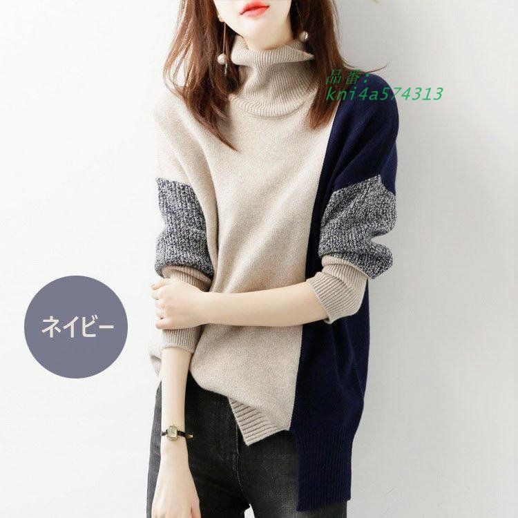 ニットセーター レディース 秋冬 40代 長袖トップス ハイネックセーター プルオーバー 大人可愛い 配色ニットトップス 風 オシャレ30代 ゆったりセーター kni4a574313 WWW_NICORILABO_COM