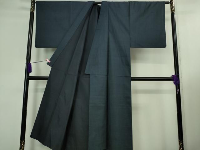 平和屋着物 上 男性 紬 アンサンブル 長羽織 色無地 濃藍色 ♥ DZAB0107kh5