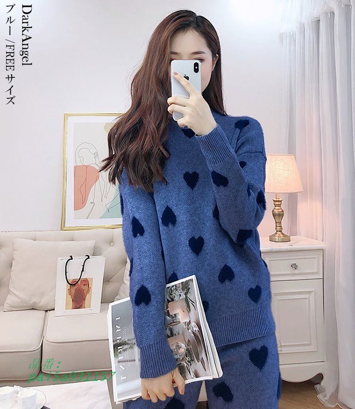 ルームウェア パジャマ セットアップ 部屋着 ハート ニット 冬 あったか ピンク 長ズボン パンツ ワンマイルウェア 可愛い長袖 上下セット pai5a931157 WWW_NICORILABO_COM